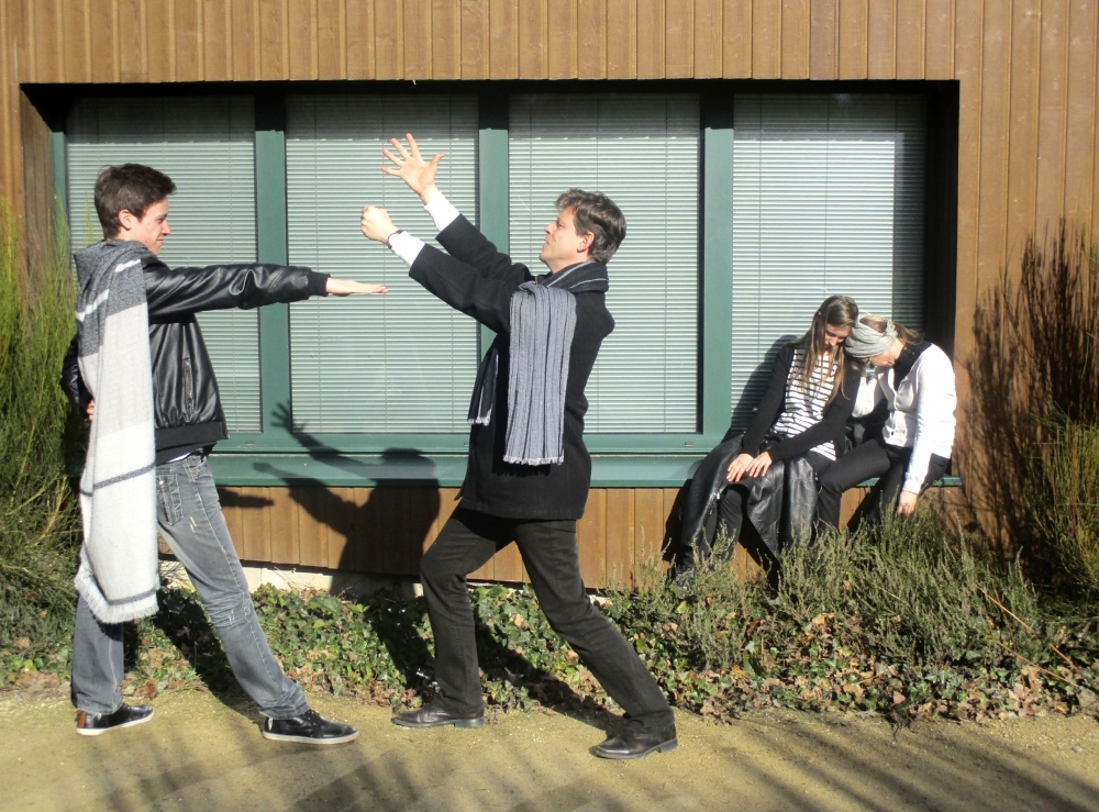 L’atelier pour la classe de CM1-CM2 consiste à élaborer des mises en scène individuelles et groupées à partir d’un corpus de gestes portants sur la thématique des jeux interdits.