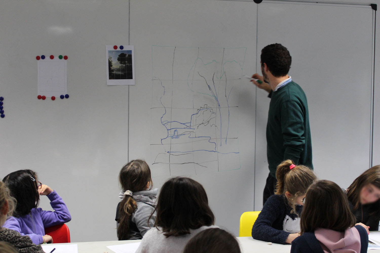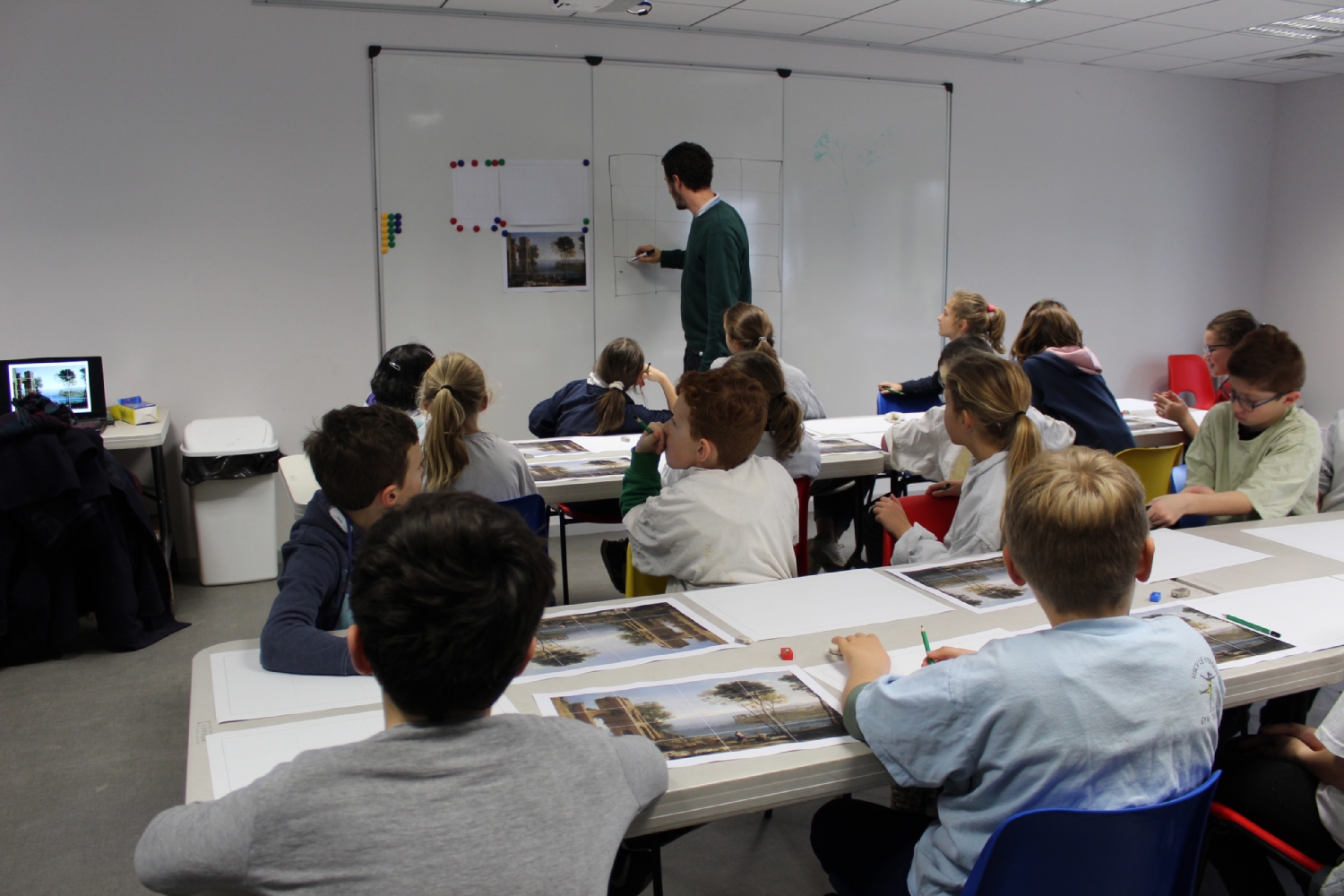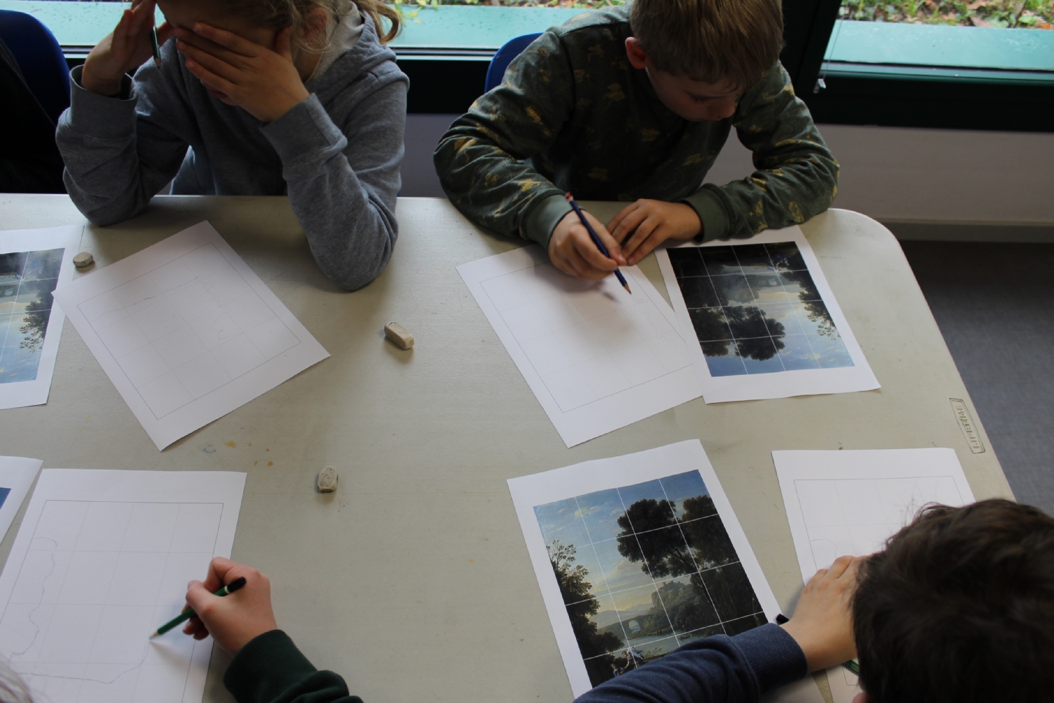 11h-12h30 : Après une présentation d'une peinture de paysage de Claude Gellée, dit Le Lorrain, Dorian Cohen explique le principe de la mise au carreau pour simplifier la reproduction d'une œuvre. De quelle manière on "découpe" un paysage : structure minérale, structure végétale, feuillage, ombres et lumières en grisés. Le premier atelier consistera à reproduire en noir et blanc une peinture de paysage, au format A4 permettant de travailler les lignes et les grisés.