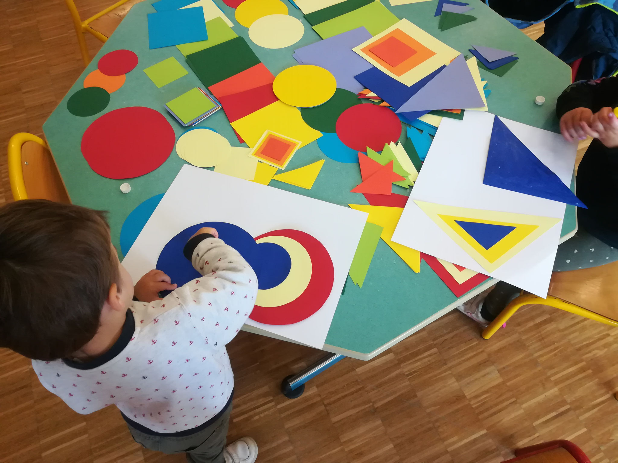 Les enfants de 0 à 3 ans sont invités à réaliser des variations de couleurs, des contrastes, des illusions à partir de formes géométriques en papiers colorés, à la manière de l’artiste Josef Albers. Cet atelier s'appuie sur l'oeuvre Narcose de Marine Bouilloud, qui fait partie du fonds d'art contemporain de Montfort Communauté.