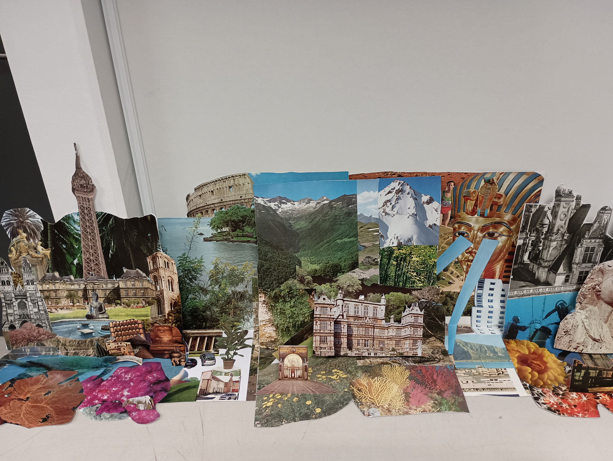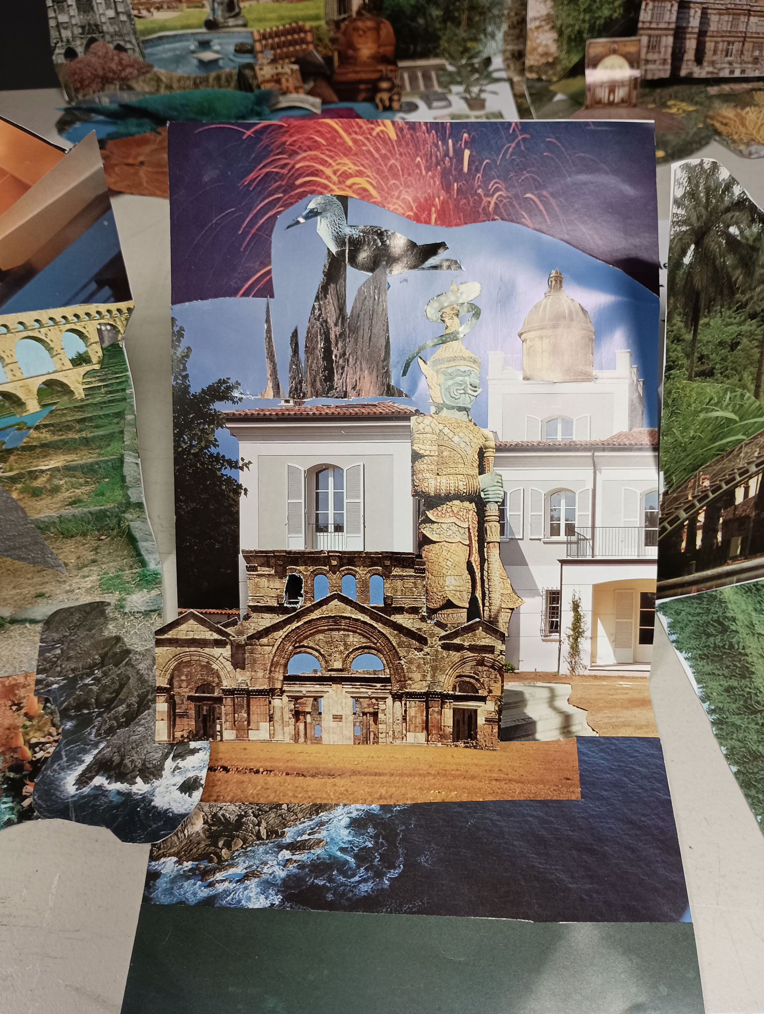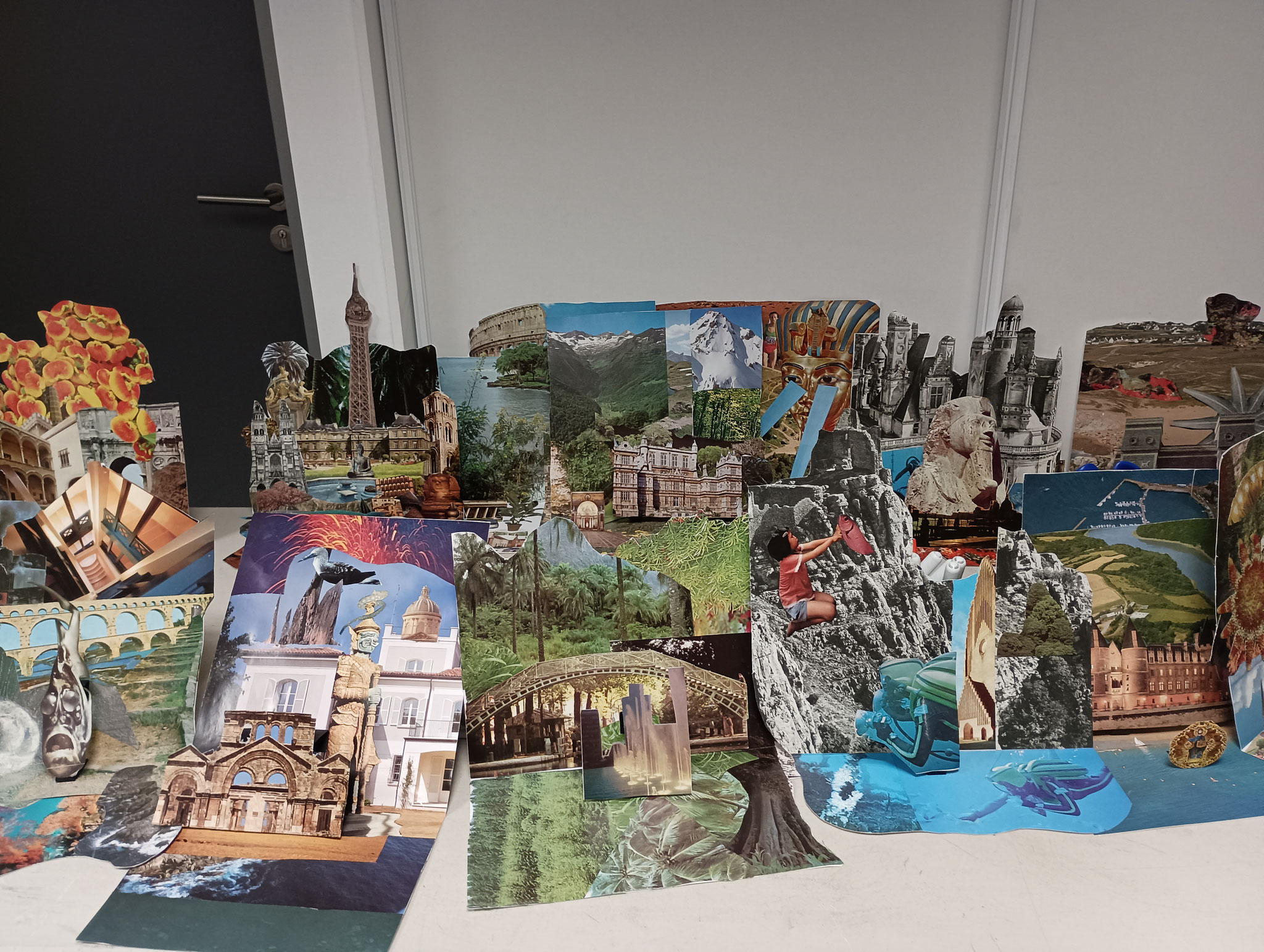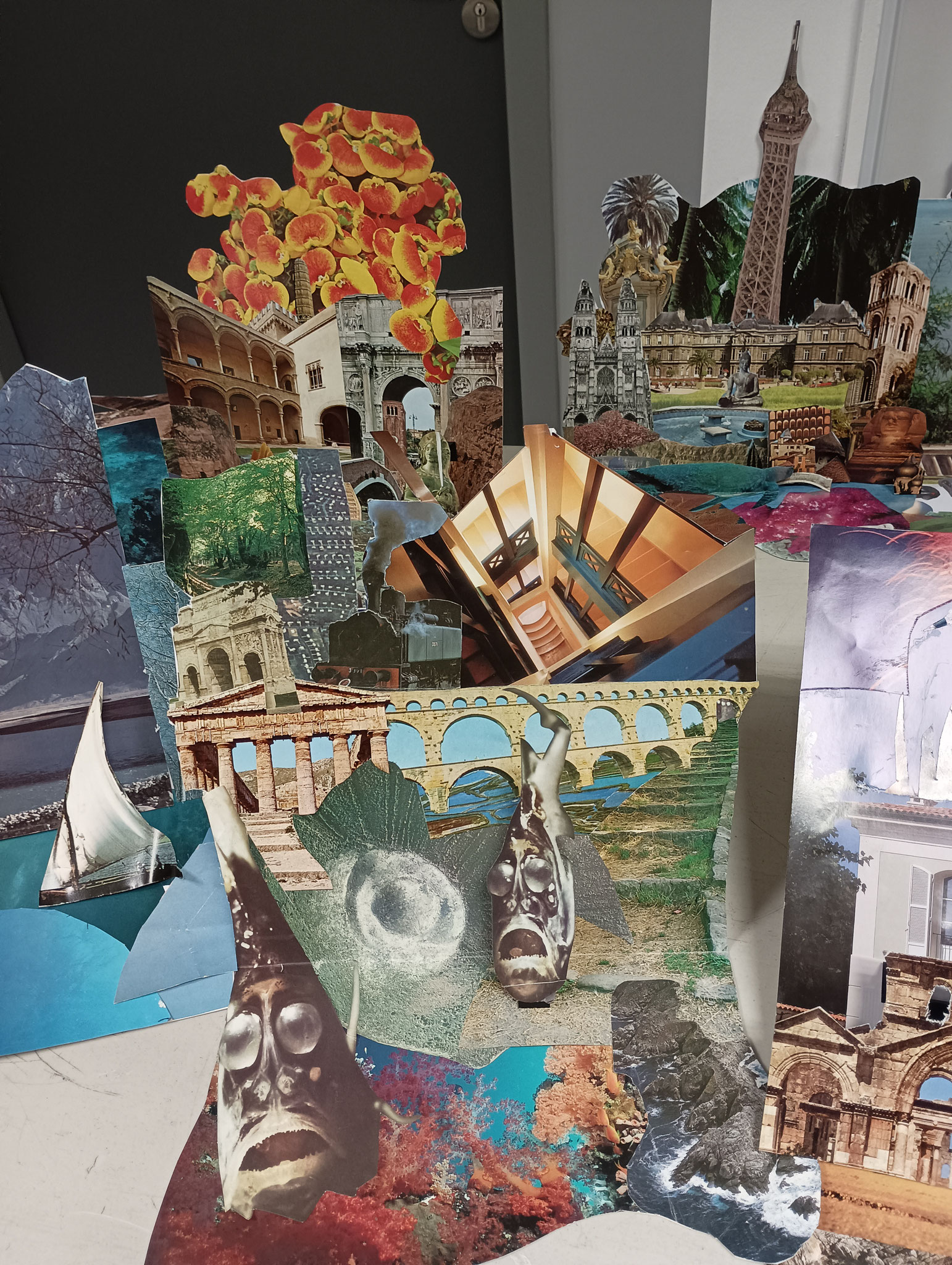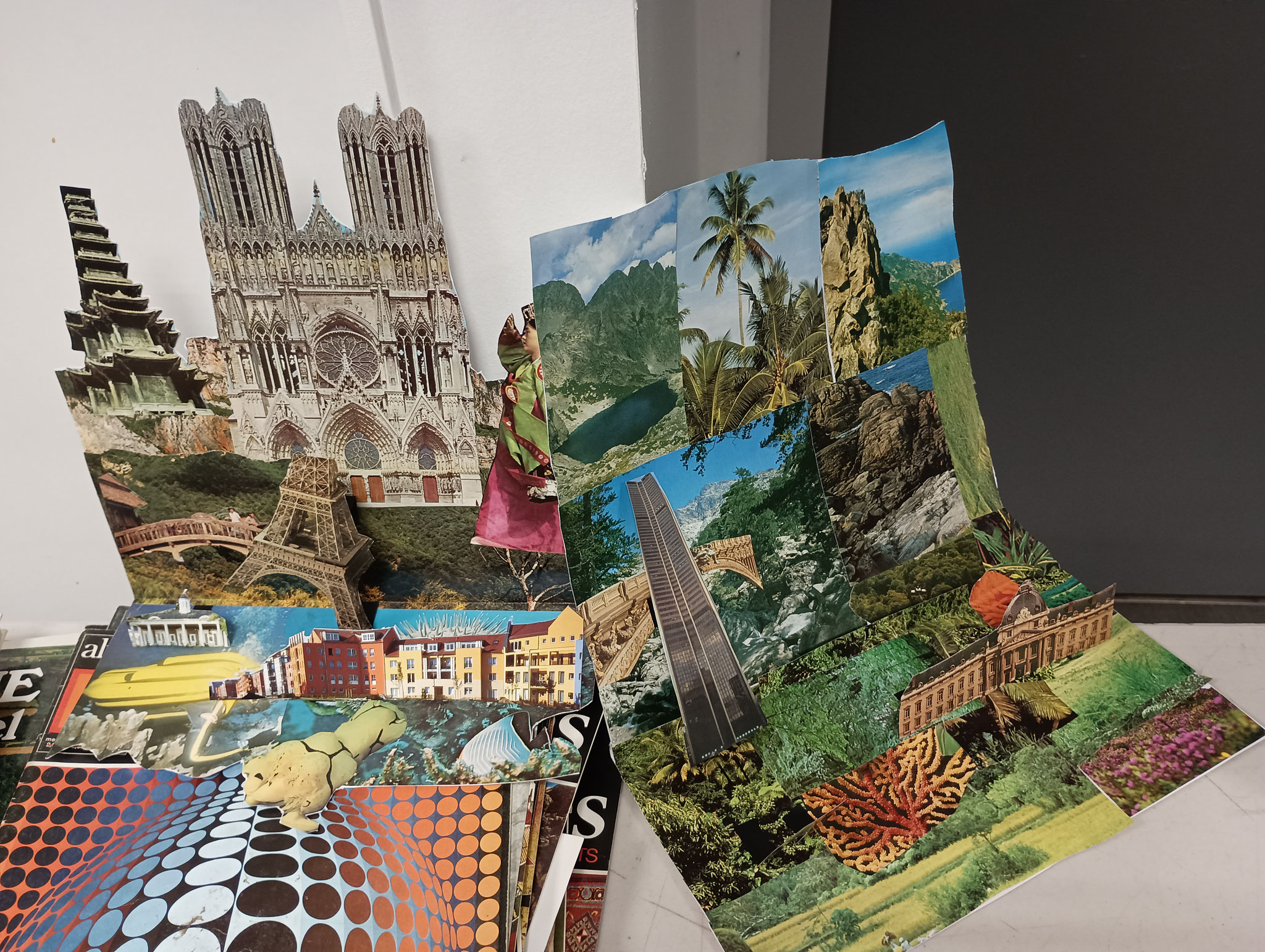 Autour de l’univers du collage, les enfants travailleront sur les associations d’images, pour imaginer des mondes utopiques et oniriques. En explorant des livres riches en images et encyclopédies oubliées, il faudra dans un premier temps effectuer une récolte visuelle, puis réfléchir aux notions de poésie visuelle, de narration, de plan, de décor et d’échelle. Le projet de chaque enfant sera présenté sur une feuille de papier A3 avec un pli, à la manière d’un Pop-Up.