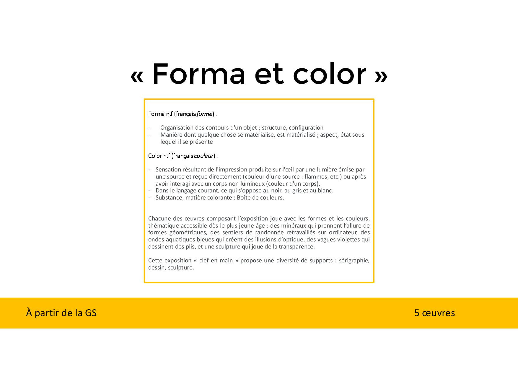 Forma et color propose un ensemble d’œuvres jouant avec les formes et les couleurs.