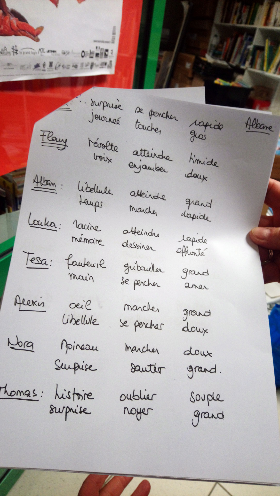 - Récoltez 2 noms communs, 2 verbes, 2 adjectifs