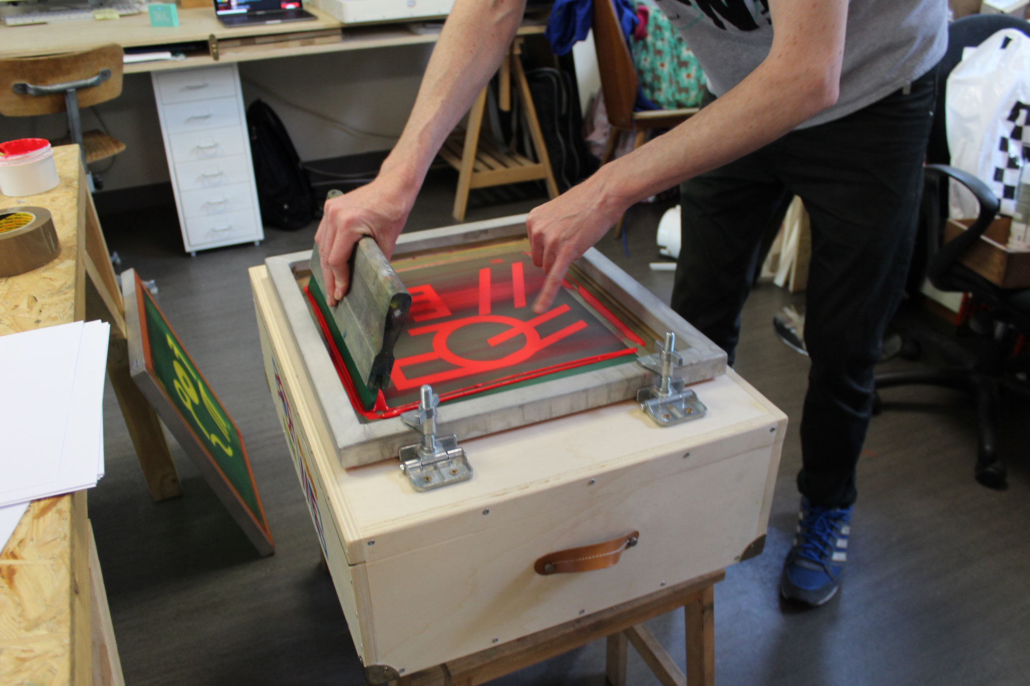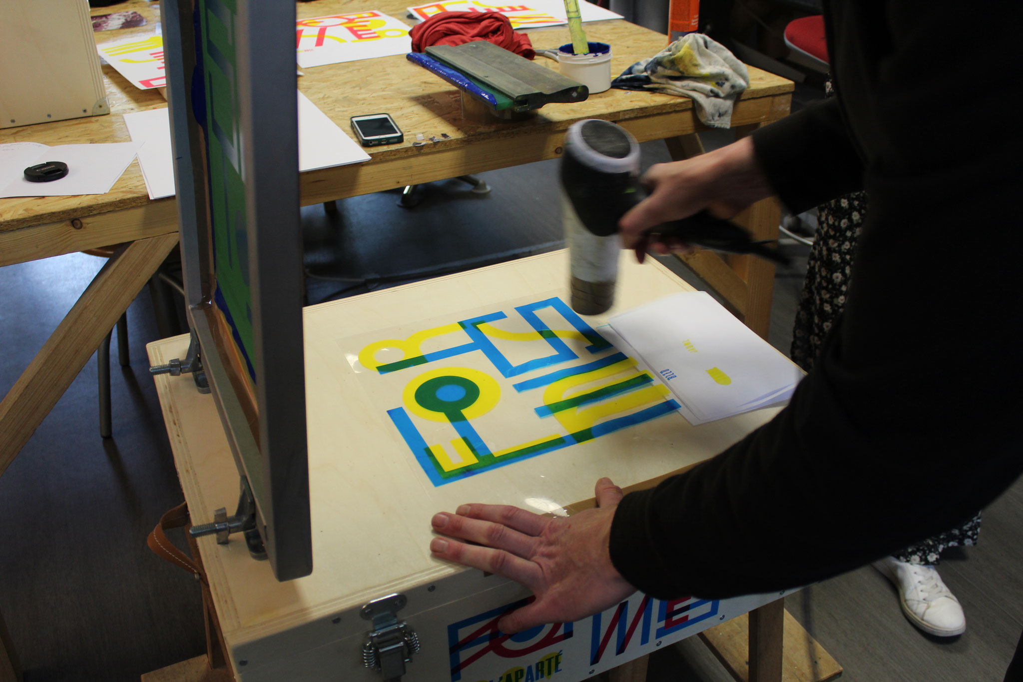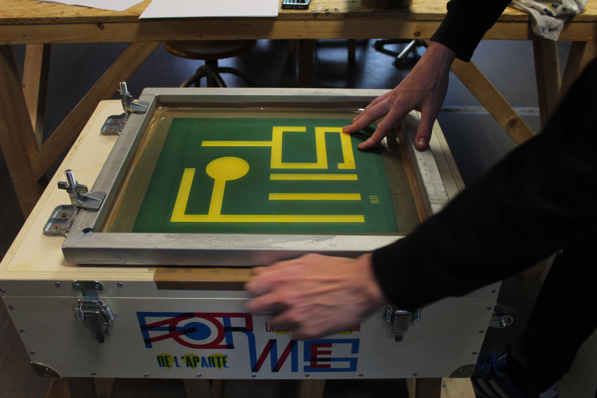 Loïc Creff alias Macula Nigra et Julien Duporté, tous les deux membres de l’association La Presse Purée, atelier de sérigraphie installé à Rennes, ont conçu un ensemble pédagogique autour de la sérigraphie.