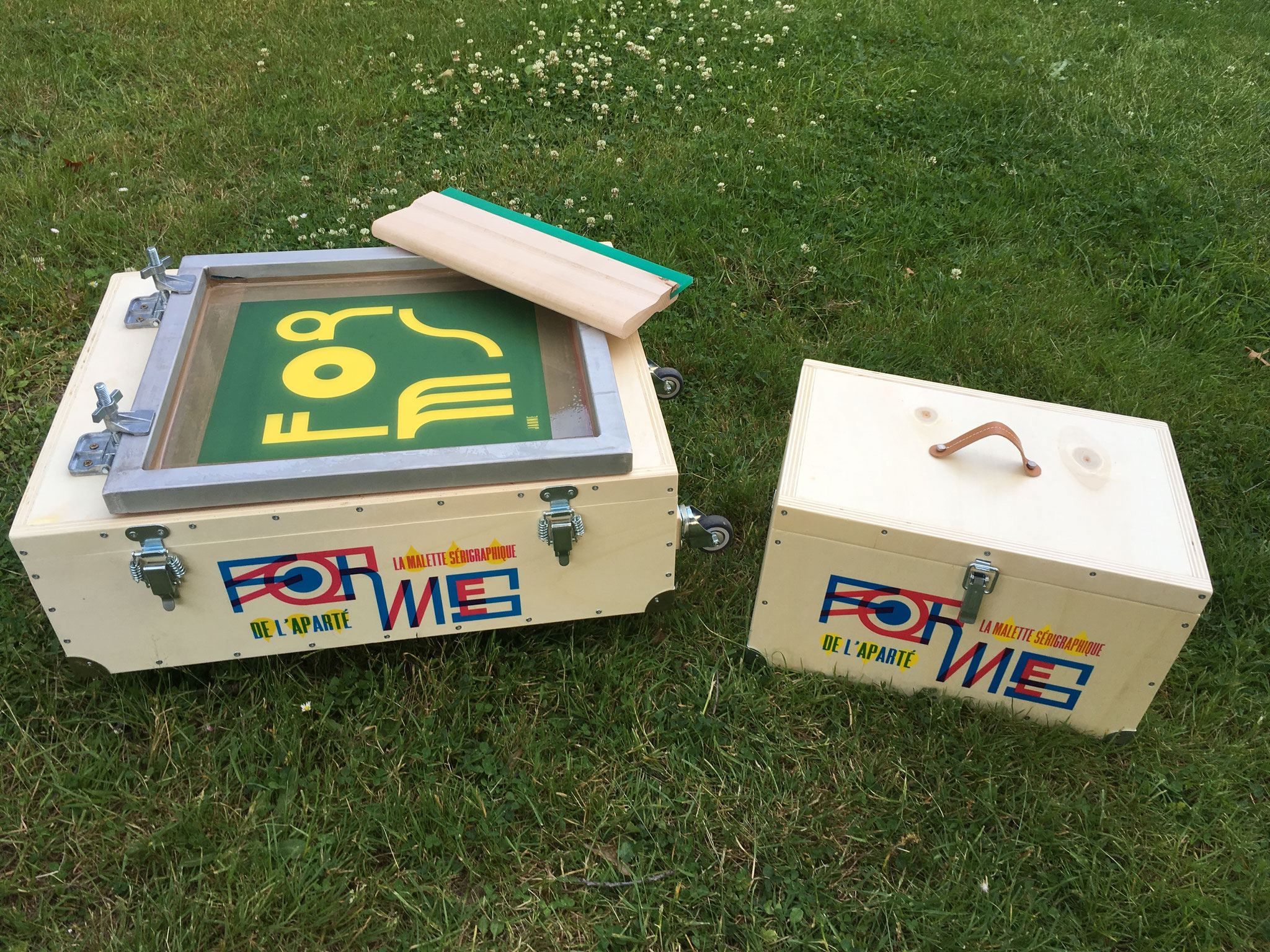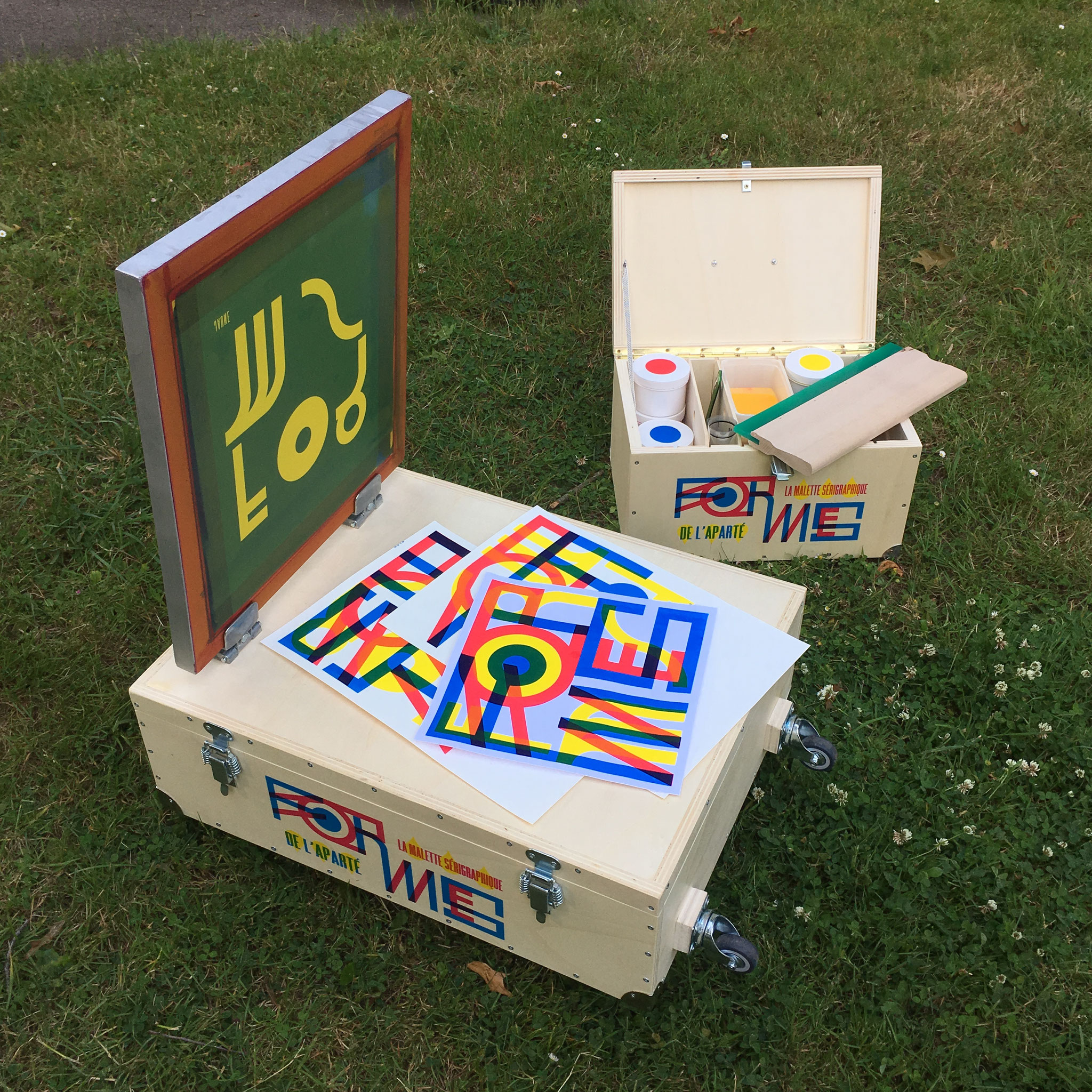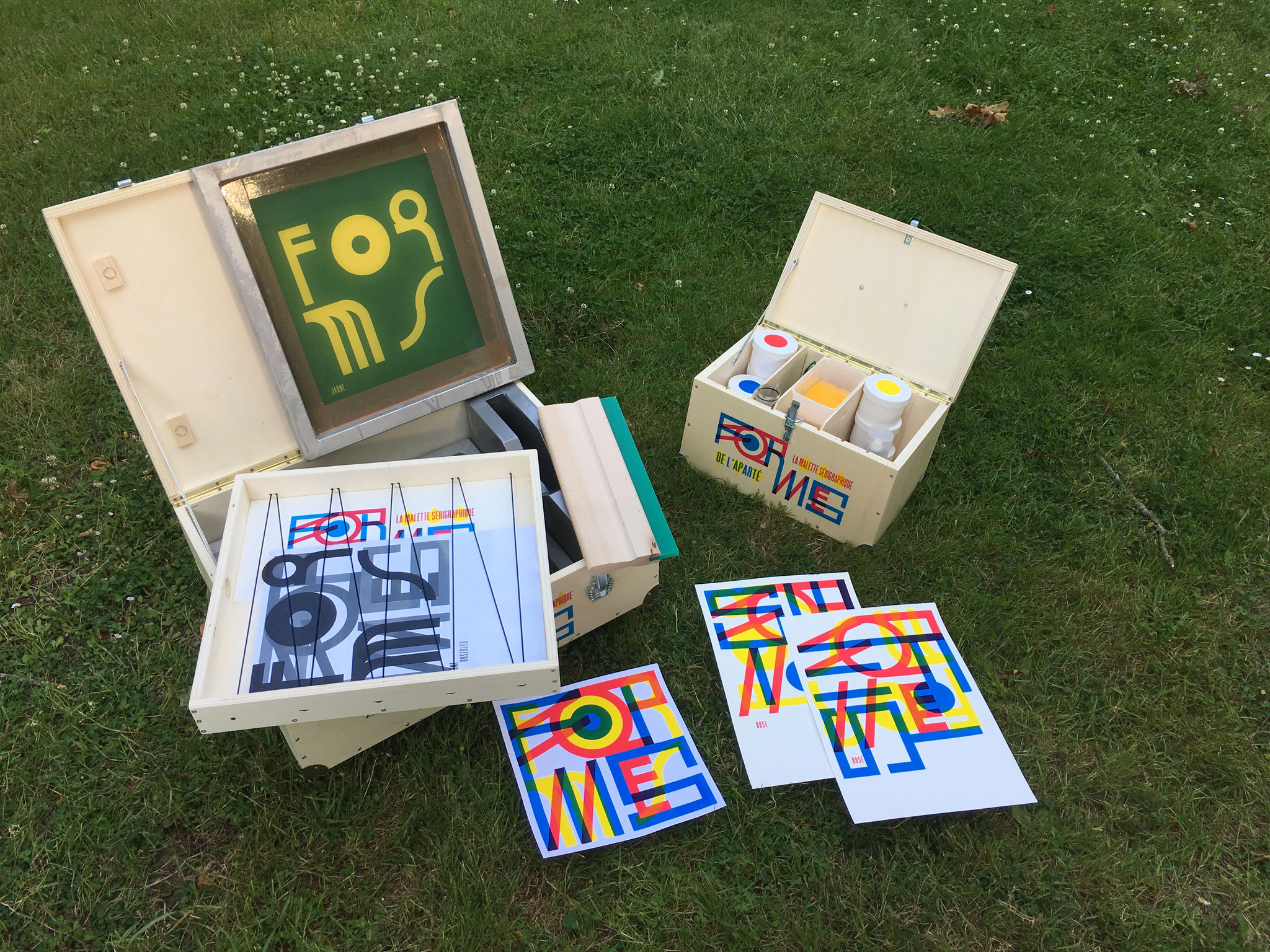 Composé de deux mallettes, trois écrans et de tout le matériel nécessaire pour l'impression, ce kit a vocation à faire découvrir au jeune public les joies de l'impression, autour d'une création graphique modulable "Formes & Couleurs".