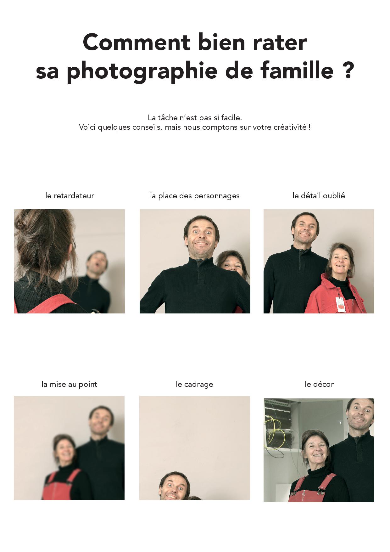 Muriel Bordier propose un défi de la plus mauvaise photo de famille, avec des surprises à découvrir pour les participants ! Muriel vous guide, pas à pas, pour rater à coup sûr votre photo de famille.Chaque famille envoie à la médiathèque de Pleumeleuc 1 ou 2 photos avant le 7 mars.